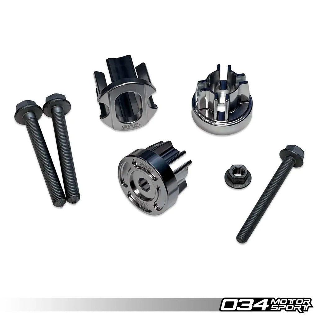 Der 034 Motorsport Billet-Aluminium-Vorderachs-Montagesatz für Audi R8 der 1. und 1.5. Generation Reduziert die Bewegung in den werkseitigen Differentiallagern, um Spiel und Verformungen im Antriebsstrang zu minimieren und das Ansprechverhalten von Vorderachse und Differential zu verbessern. Durch das Ausfüllen kleiner Lücken in den werkseitigen Lagern eliminiert dieses Set Einsätze die damit verbundenen Bewegungen im Antriebsstrang und sorgt so für ein direkteres und präziseres Fahrgefühl, insbesondere bei Gaspedalwechseln. Die aus Billet-Aluminium gefertigten Teile sind langlebig und verschleißfest und bieten eine dauerhafte Leistungssteigerung. NVH (Geräusche, Vibrationen, Rauheit) misst, wie viel Schall, Vibrationen und Rauheit in den Fahrzeuginnenraum übertragen werden. Basierend auf Nutzerfeedback… 034 Motorsport Differentiallagereinsätze sorgen für geringe Geräusch- und Vibrationsbelastung (NVH) im Fahrgastraum. Da NVH subjektiv ist, können die Werte einzelner Nutzer von unseren Angaben abweichen. Sollten Sie mit diesem Produkt höhere als die angegebenen NVH-Werte feststellen, überprüfen Sie bitte den Einbau, um sicherzustellen, dass alle Komponenten korrekt installiert sind, und kontaktieren Sie uns per E-Mail techsupport@034motorsport.com für weitere Unterstützung Audi R8 der 1. und 1.5. Generation Die bisherigen Gummilager für das Vorderachsdifferenzial verformen sich unter Last, was zu einer verzögerten Kraftübertragung auf die Vorderräder und einem suboptimalen Fahrverhalten beim Schalten und Beschleunigen führt. Diese präzisionsgefertigten Einsätze aus Billet-Aluminium füllen die Lücken in den werkseitigen Differenziallagern und begrenzen die Differenzialbewegung unter Last, ohne den Fahrkomfort zu beeinträchtigen oder zusätzliche Geräusche, Vibrationen oder Rauheit in den Innenraum zu übertragen. Das Ergebnis ist ein kultivierteres und direkteres Fahrgefühl.