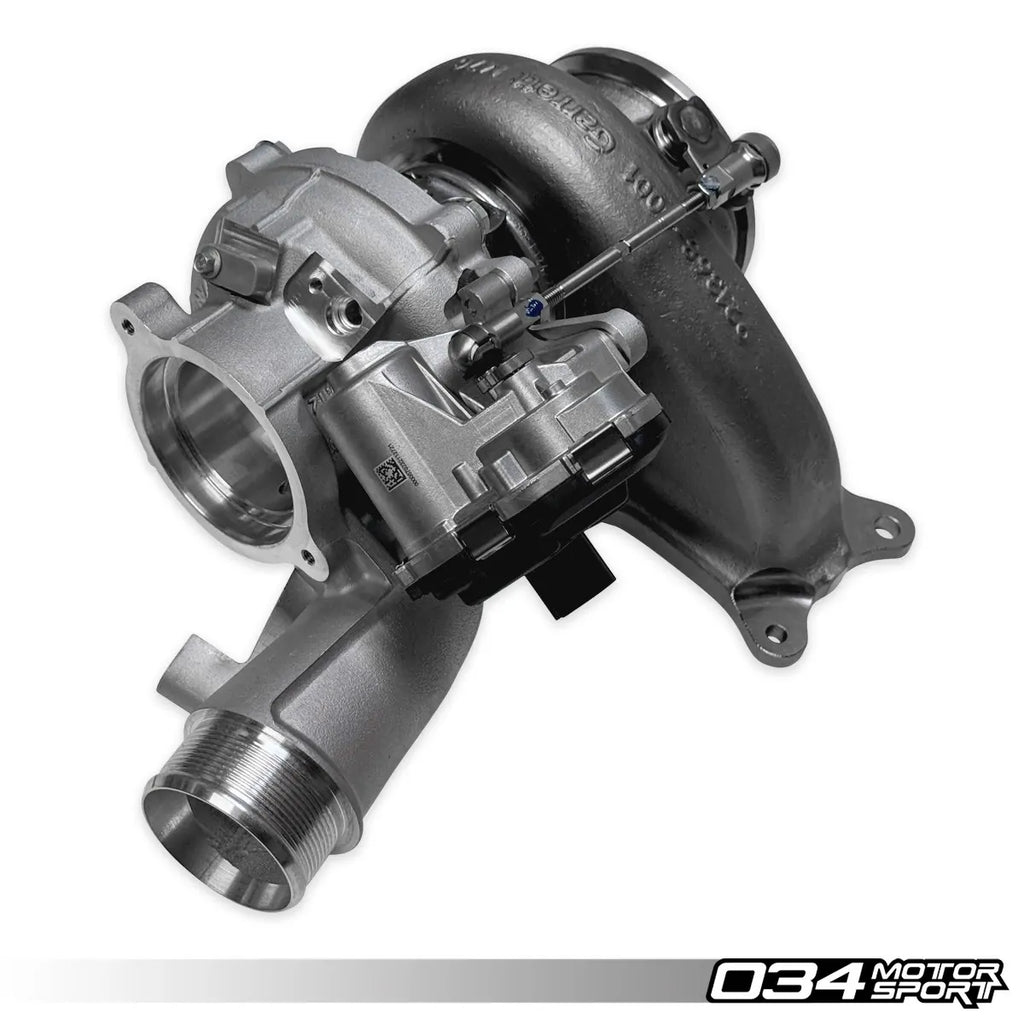 De Garrett PowerMAX GT2563S Turbocharger Upgrade is een direct-fit prestatie-upgrade, speciaal ontworpen voor de 2.0L EA888 Evo4 motoren in de Mk8 Golf R en Audi 8Y S3. Deze turboupgrade is perfect voor enthousiastelingen die hun motorprestaties aanzienlijk willen verhogen zonder de OEM-pasvorm aan te tasten. Met +20% meer compressorstroom en +37% meer turbineflow in vergelijking met de originele turbo, biedt de GT2563S indrukwekkende prestaties, zowel op straat als op het circuit. Deze turbo is uitgerust met de nieuwste generatie compressor- en turbinewieltechnologie van Garrett, wat zorgt voor maximale stroom en efficiëntie. Het gebruik van een Mar-M legering voor het turbinewiel en een robuuste twin-scroll turbinebehuizing van roestvrij staal, bestand tegen temperaturen tot 1050°C, maakt deze turboupgrade extreem duurzaam. Belangrijk om op te merken is dat deze upgrade een aangepaste software, zoals de 034 Motorsport Dynamic+ Stage 3 PMAX ECU-tuning (binnenkort beschikbaar), vereist om het volledige potentieel te benutten.