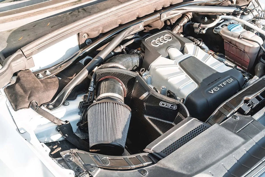 De S34 Koolstofvezel Inlaat voor de Audi B8/8.5 Q5/SQ5 3.0 TFSI biedt verbeterde kracht, een indrukwekkend supercharger geluid en algehele prestaties in een aantrekkelijke en kosteneffectieve verpakking. Dit systeem is ontwikkeld voor de supercharged 3.0 TFSI motor en zorgt voor merkbare stijgingen in vermogen en koppel, samen met een agressief inductiegeluid en het kenmerkende geluid van de supercharger. Er is veel aandacht besteed aan de ontwikkeling van deze prestatieverbeterende inlaatoplossing. Het geoptimaliseerde open-luchtbox ontwerp maakt gebruik van de fabrieksluchtinlaat om koele lucht naar het filter te geleiden. De ruime luchtbox bevat een grote 4" conische luchtfilter, vrij van beperkende omhulsels, en leidt lucht door een CFD-geoptimaliseerde 4-laagse siliconen inlaatbuis die de luchtsnelheid naar de gasklep soepel verhoogt. 034 Motorsport heeft het ontwerp grondig getest en verfijnd om maximale luchtstroom rondom het luchtfilter te waarborgen. Hierdoor ontstaat de juiste filtergrootte in de juiste filterbehuizing, wat zorgt voor maximale luchtstroom en prestaties met OEM-kwaliteit filtratie. Dit alles resulteert in een inlaat die de prestaties van uw motor optimaliseert zonder onnodige beperkingen.