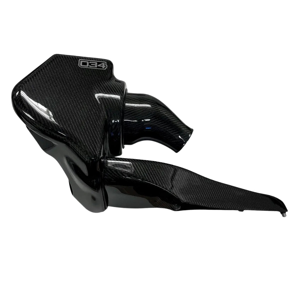 Entwickelt für den Anschluss an den originalen Turboeinlass und wird ohne Frischluftkanal aus Kohlefaser geliefert.