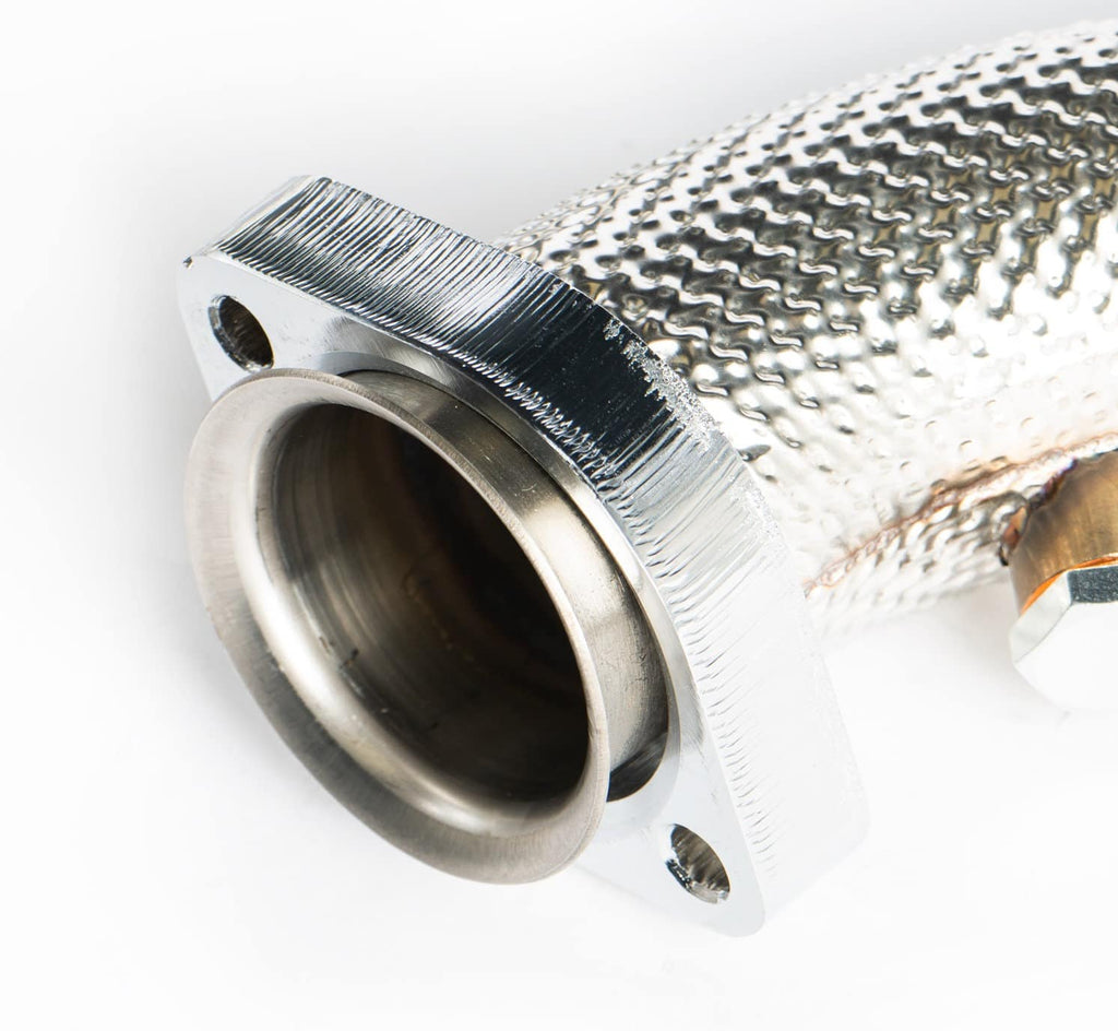 Naast het ontketenen van de kracht en prestaties van je 3.0 Twin Turbo, zullen onze downpipes je voertuig laten klinken zoals het hoort. Geïnstalleerd met de fabrieksuitlaat produceert het een luider en dieper gegrom met een veel duidelijker "crackle" bij terugschakelen. Bij het opschakelen geniet je van een zelfverzekerde "punch!" terwijl je door alle versnellingen heen gaat. Het geluid zal nog luider zijn als je al een aftermarket uitlaatsysteem hebt.