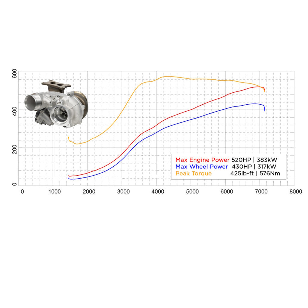 De Garrett PowerMax GT2563 turbo-upgrade is ontworpen voor de nieuwste generatie VAG EA888 Gen4 2.0 TSI/TFSI motoren (2020+). Deze direct-fit performance turbo levert tot 550 pk (410 kW) en 576 Nm koppel, terwijl hij perfect past op de OEM positie. Met +20% meer compressor flow en +37% meer turbine flow dan de originele turbo, biedt dit systeem maximale efficiëntie en betrouwbaarheid.