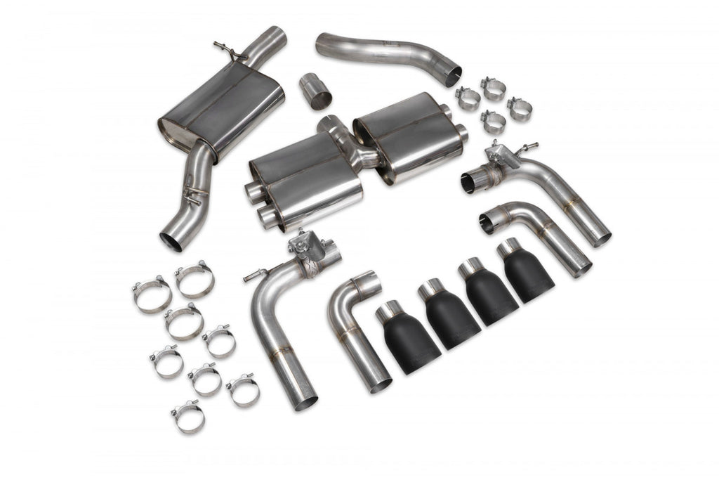 De Scorpion Resonerend Cat/GPF-back systeem met kleppen voor de Audi S3 2.0T 8V (Saloon) is een must-have voor autoliefhebbers die op zoek zijn naar een combinatie van prestaties, geluid en esthetiek. Dit uitlaatsysteem is geïnspireerd op de rijke geschiedenis van Audi in de autosport en biedt een moderne upgrade voor de S3-modellen van 2013 tot 2016. Audi heeft zijn naam gevestigd met de legendarische Audi Ur Quattro, de eerste productieauto met vierwielaandrijving en turbo. Deze innovatie heeft de basis gelegd voor de prestatiegerichte modellen die we vandaag de dag zien. Met het Scorpion-systeem krijgen bestuurders de kans om deze legacy voort te zetten en hun rijervaring naar een hoger niveau te tillen. Gemaakt van premium 80mm/3.14” T304 RVS, dit systeem is ontworpen voor maximale gasdoorstroming en prestaties. De CNC Mandrel gebogen grote diameter zorgt ervoor dat het uitlaatsysteem niet alleen krachtiger is, maar ook lichter dan het originele systeem. Bij installatie zal de gewichtsreductie direct merkbaar zijn, wat bijdraagt aan een snellere acceleratie en betere handling. Er zijn verschillende uitvoeringen van dit uitlaatsysteem beschikbaar, waaronder resonerend met kleppen, resonerend zonder kleppen, non-resonerend met kleppen en non-resonerend zonder kleppen. Het systeem met kleppen kan eenvoudig worden bediend via de originele motor en de drive mode select knop in de auto, wat betekent dat bestuurders de mogelijkheid hebben om het geluidsniveau aan te passen aan hun rijstijl. Het systeem zonder kleppen biedt daarentegen een constante sportievere klank, ideaal voor degenen die de voorkeur geven aan een meer agressieve geluidservaring.