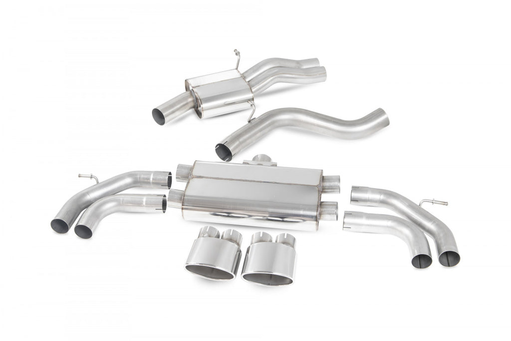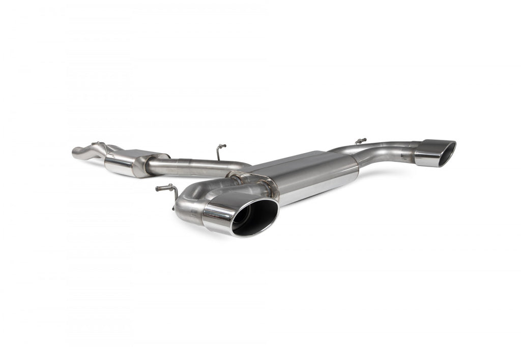 De Scorpion Cat-Back Uitlaatsysteem is speciaal ontwikkeld voor de Audi RS3 8V Saloon / Sedan modellen van 2017 tot 2018. Dit uitlaatsysteem is ontworpen om de prestaties te verbeteren en de rijervaring naar een hoger niveau te tillen. Met een focus op zowel functionaliteit als esthetiek, biedt dit systeem een perfecte balans tussen kracht en geluid. De hoogwaardige constructie van het uitlaatsysteem maakt gebruik van T304 motorsport roestvrij staal, wat zorgt voor een lange levensduur en uitstekende hittebestendigheid. Het ontwerp is zorgvuldig getest om maximale doorstroming te garanderen, wat resulteert in een scherpere throttle respons en een merkbare toename in vermogen. De CNC Mandrel gebogen buizen minimaliseren weerstand en zorgen voor een optimale afvoer van uitlaatgassen. Dit uitlaatsysteem is beschikbaar in twee varianten: valved en non-valved. Met de valved optie kan de bestuurder het geluidsniveau aanpassen met de originele motorbediening, terwijl de non-valved versie een sportievere en continuere klank levert. Dit biedt een unieke rijervaring, afhankelijk van de voorkeur van de bestuurder. Bij het monteren op een non-GPF model of een model met een sport- of Downpipe Decat, is het aan te raden om het resonated systeem te gebruiken om ongewenste geluidsdrones te minimaliseren. Voor GPF-modellen wordt het non-resonated systeem aanbevolen om de mooiste klanken van de motor naar voren te brengen. Daarnaast zijn de premium carbon Ascari Evo eindstukken ontworpen om naadloos in de achterzijde van de auto te passen, wat bijdraagt aan de sportieve uitstraling van de Audi RS3. Met het Scorpion Cat-Back Uitlaatsysteem wordt niet alleen de prestaties verbeterd, maar ook de algehele esthetiek van de auto naar een hoger niveau getild.