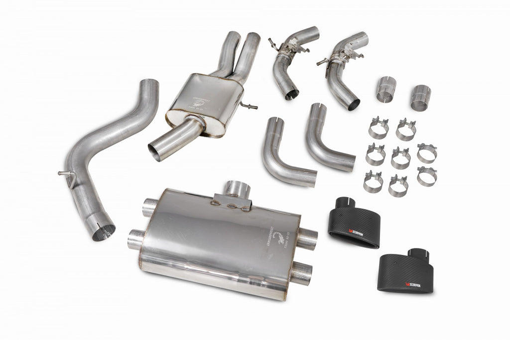 De resonerend cat/gpf-back systeem van Scorpion is speciaal ontworpen voor de Audi TT RS MK3 en biedt een uitstekende geluidsverbetering en prestatieverbetering. Audi maakte in de jaren '80 naam met de legendarische Audi Ur Quattro, de eerste productieauto met vierwielaandrijving en turbo. Dit systeem bouwt voort op die rijke heritage en biedt een premium upgrade voor de huidige generatie TT RS. Gemaakt van hoogwaardig T304 RVS met een diameter van 80mm/3,14”, is dit systeem beschikbaar voor zowel GPF- als non-GPF modellen. Voor een non-GPF model of een model met een sport- of Downpipe Decat, raden we het resonerend systeem van Scorpion aan om cabinegeluid te minimaliseren. Bij GPF-modellen adviseren we ons non-resonerend systeem voor een levendigere geluidsbeleving. Onze Carbon Ascari Evo uitlaten zijn ontworpen om perfect in de achterbumper te passen, wat bijdraagt aan de sportieve uitstraling van de Audi. Beide systemen zijn verkrijgbaar met of zonder kleppen, zodat de bestuurder de geluidsinstellingen kan personaliseren. De valved optie maakt gebruik van de originele motor en kan worden bediend via de rijmodus-selectieknop in de auto. De non-valved optie verwijdert de klep volledig voor een continu sportiever geluid. Met dit systeem is er een meetbare gewichtsreductie ten opzichte van het originele systeem, een verbetering die de meeste bestuurders niet kunnen weerstaan. Aan de achterkant van het systeem is een akoestisch ontwikkelde demper geplaatst om een optimale geluidskwaliteit zonder drone door het hele toerengebied te garanderen.
