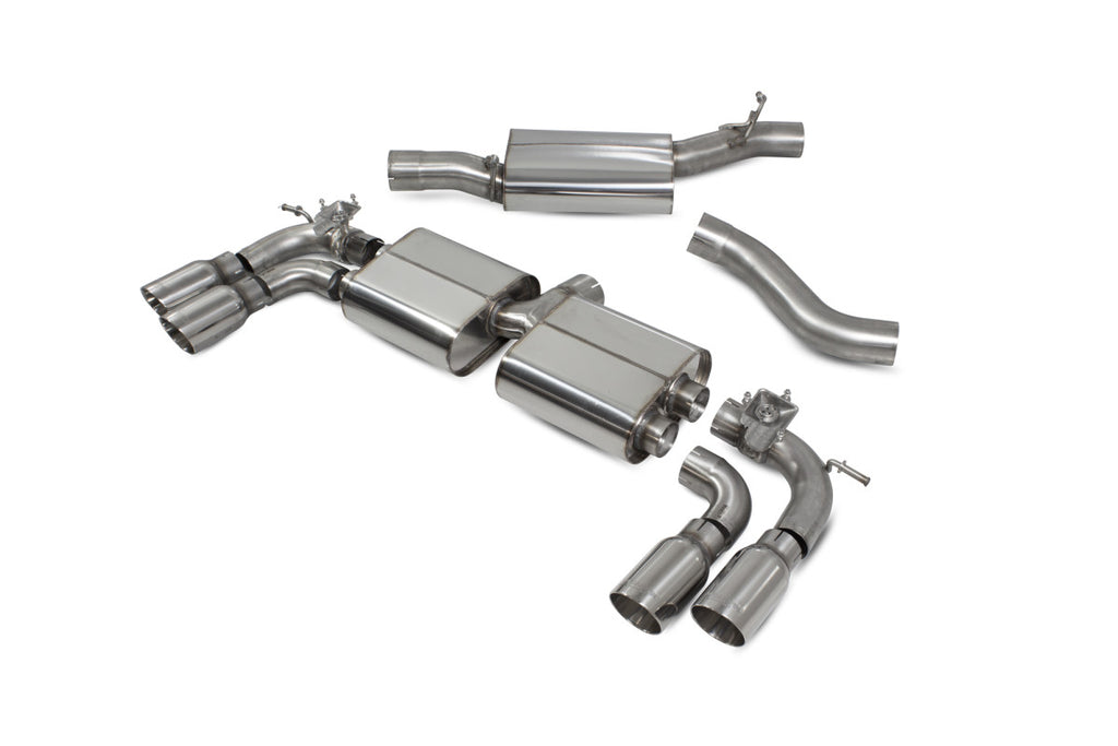 Scorpion biedt een hoogwaardig Resonerendcat/gpf-back systeem voor de Audi S3 2.0T 8V (PFL 2013-2016), een verfijnd voertuig dat prestaties naar een hoger niveau tilt. Audi's prestatiegeschiedenis begon in de jaren 80 met de iconische Ur Quattro, en die erfgoedlijn leeft voort in moderne Audi-modellen zoals de S3. Scorpion speelt hierop in met uitlaatsystemen die zowel het vermogen als het geluid aanzienlijk verbeteren. Dit systeem, gemaakt van premium T304 roestvrij staal met een buisdiameter van 80mm/3.14”, verhoogt de doorstroming van uitlaatgassen, wat resulteert in meer vermogen, koppel en een beter geluid. Beschikbaar in verschillende varianten – Resonerenden Neit-Resonerendopties, met of zonder kleppen – biedt het de flexibiliteit om het geluid aan te passen aan de rijstijl van de bestuurder. De variant met kleppen wordt bediend via de originele Drive Mode-knop, waardoor bestuurders kunnen schakelen tussen stille of sportieve rijervaringen. Naast verbeterde prestaties, zorgt het Scorpion-systeem voor een merkbare gewichtsbesparing ten opzichte van het originele uitlaatsysteem, wat een directe verbetering van de rijprestaties en wendbaarheid oplevert. Het systeem is ook afgestemd op de esthetiek van de Audi S3, met drie stijlvolle eindpijpopties: Polished Daytona, Black Ceramic Daytona, en Carbon Ascari. Dit zorgt ervoor dat het systeem zowel qua prestaties als uitstraling perfect past bij de auto. Voor de echte prestatie-liefhebbers biedt Scorpion aanvullende opties, zoals de Downpipe Decat voor maximale gasdoorstroming op het circuit, of de sport-katalysator downpipe voor legale rijomstandigheden met verhoogde doorstroming.