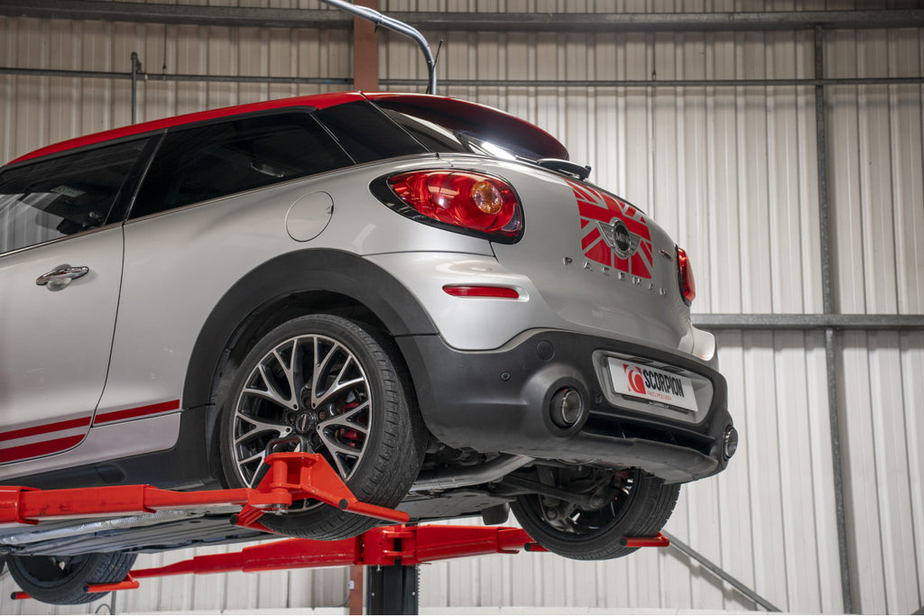 Der Scorpion Nicht-resonantes Cat-Back-System ist speziell für die Mini Paceman R61 Cooper S (einschließlich JCW) und die Mini Countryman R60 All4 aus den Jahren 2010 - 2016Seit seiner Markteinführung 1959 hat sich der klassische Mini zu einer globalen Ikone entwickelt, insbesondere nach der Zusammenarbeit mit Cooper in den 1960er Jahren. Der Cooper S, der 1964 und 1965 an der Rallye Monte Carlo teilnahm und diese gewann, etablierte den Mini als Legende. Skorpion Seit über 30 Jahren produziert Minis Performance-Systeme für klassische und neuere Mini-Modelle. Dank unserer neu entwickelten Cat-Back-Systeme können sich Fahrer auf rennstreckenerprobte Technologie verlassen und sich darauf verlassen, dass unsere Produkte auch im Straßenverkehr optimale Leistung erbringen. Unsere branchenführenden Ingenieure haben ein 63,5-mm-/2,5-Zoll-Cat-Back-System aus hochwertigem T304-Edelstahl in Motorsportqualität entwickelt, das selbst härtesten Bedingungen standhält. Dank CNC-Dornbiegetechnologie bietet dieses System ein direkteres Ansprechverhalten und eine messbare Leistungssteigerung (PS). Im Vergleich zur Originalausrüstung ist es leichter und verbessert so das Fahrerlebnis. Wir bieten das Cat-Back-System ausschließlich als nicht-resonante Version an. Unsere Tests haben gezeigt, dass dieses System einen exzellenten, sportlichen Klang ohne störendes Dröhnen erzeugt. Der Sound des Paceman ist beim Gasgeben unverwechselbar und knackig, bleibt aber auch beim Cruisen angenehm. Passend zur Optik des Countryman bieten wir verschiedene Scorpion-Auspuffendrohre an, darunter polierte Daytona-Endrohre, schwarz-keramische Daytona-Endrohre und Ascari-Endrohre aus Kohlefaser, die bei Performance-Enthusiasten sehr beliebte sind. Für zusätzliche Leistung ist ein 63,5-mm-/2,5-Zoll-200-Zellen-Akku erhältlich. Hochleistungs-Sportkatalysator-Downpipe oder ein 70mm/2.75” Downpipe Decat.