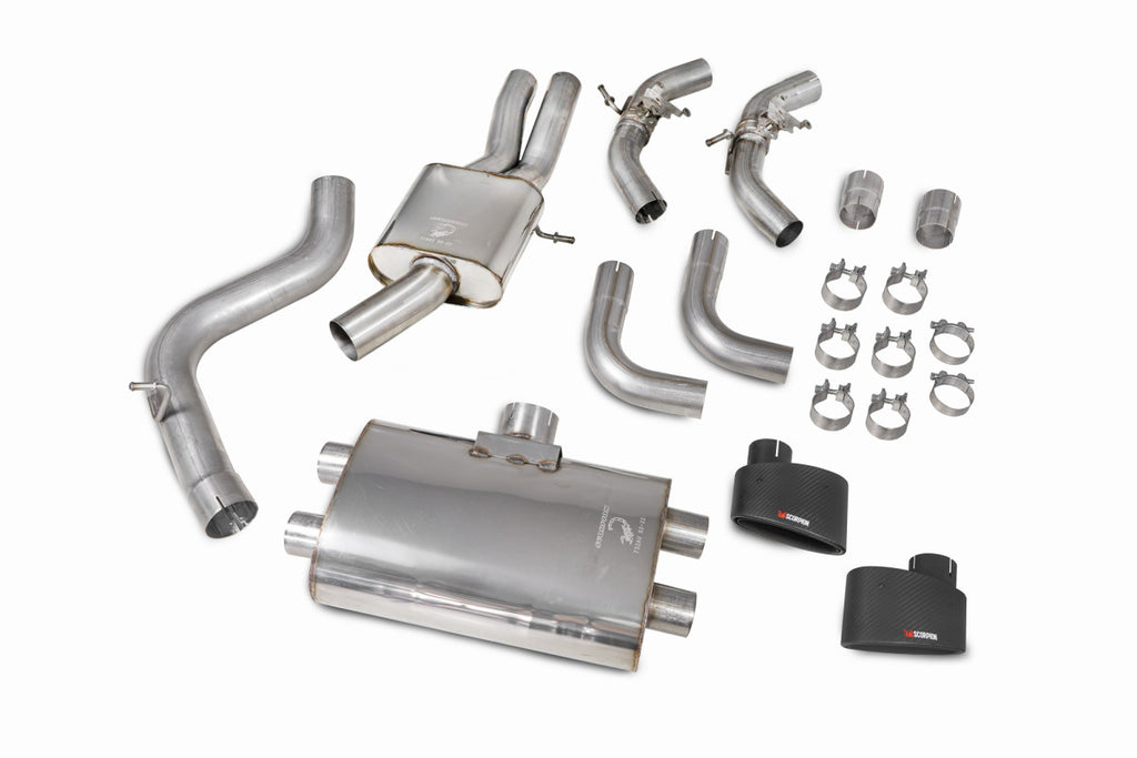 De Scorpion Performance Uitlaat is speciaal ontwikkeld voor de Audi RS3 8V Limousine/Sedan van 2017 tot 2018 (Non-GPF model). Deze uitlaat verbetert niet alleen de prestaties, maar geeft ook een sportieve klank die de rijervaring naar een hoger niveau tilt. Met een focus op optimale prestaties en geluidskwaliteit, biedt deze uitlaat een perfecte balans tussen functionaliteit en esthetiek. De uitlaat is ontworpen met gebruik van hoogwaardige materialen, waaronder T304 RVS, dat zorgt voor een uitstekende duurzaamheid en weerstand tegen corrosie. Dankzij de 80mm/3.15” Cat/GPF-back systeem wordt de uitlaatgasdoorstroming aanzienlijk verbeterd, wat resulteert in een scherpere gasrespons en een merkbare toename in pk’s. Dit maakt elke rit dynamischer en spannender. De valved optie geeft bestuurders de mogelijkheid om het geluidsniveau naar wens aan te passen. Dit betekent dat je op rustige momenten kunt genieten van een subtiele klank, terwijl je bij sportieve rijomstandigheden kunt profiteren van een krachtige en diepere sound. De non-valved optie is ideaal voor diegenen die constant willen genieten van een sportieve klank zonder enige beperking. Bij de ontwikkeling van deze uitlaat zijn geavanceerde technieken zoals CNC Mandrel buigen toegepast, wat zorgt voor een uitstekende pasvorm en minder weerstand in het uitlaatsysteem. Dit leidt niet alleen tot betere prestaties, maar ook tot een gewichtsbesparing in vergelijking met het originele systeem, wat bijdraagt aan een betere algehele rijervaring. Om de sportieve uitstraling van de Audi RS3 te complimenteren, zijn de Ascari Evo tailpipes met zorg ontworpen om perfect in de achterste valance te passen.
